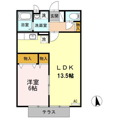 - 洋室6帖、LDK13.5帖