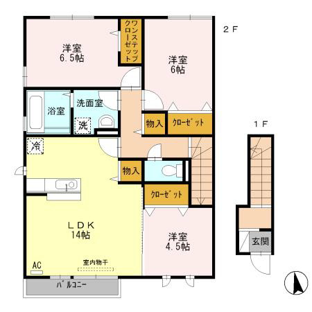 - LDK14帖、洋室6帖、洋室6.5帖、洋室4.5帖