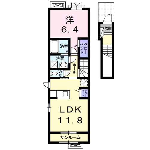 - 洋室6.4帖、LDK11.8帖