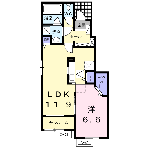 - 洋室6.6帖、LDK11.9帖