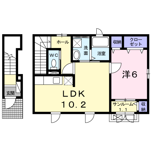 - 洋室6帖、LDK10.2帖