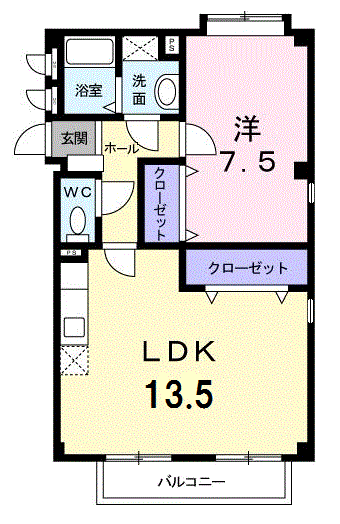 - 洋室7.5帖、LDK13.5帖