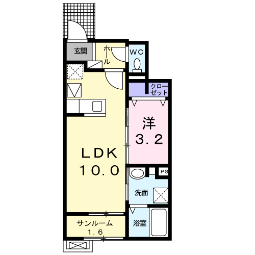 - 洋室3.2帖、LDK10帖