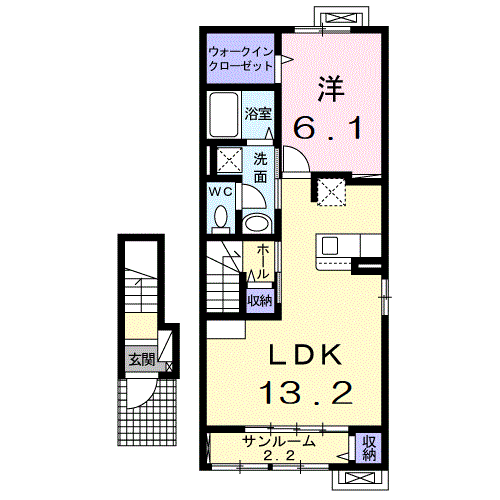 - 洋室6.1帖、LDK13.2帖